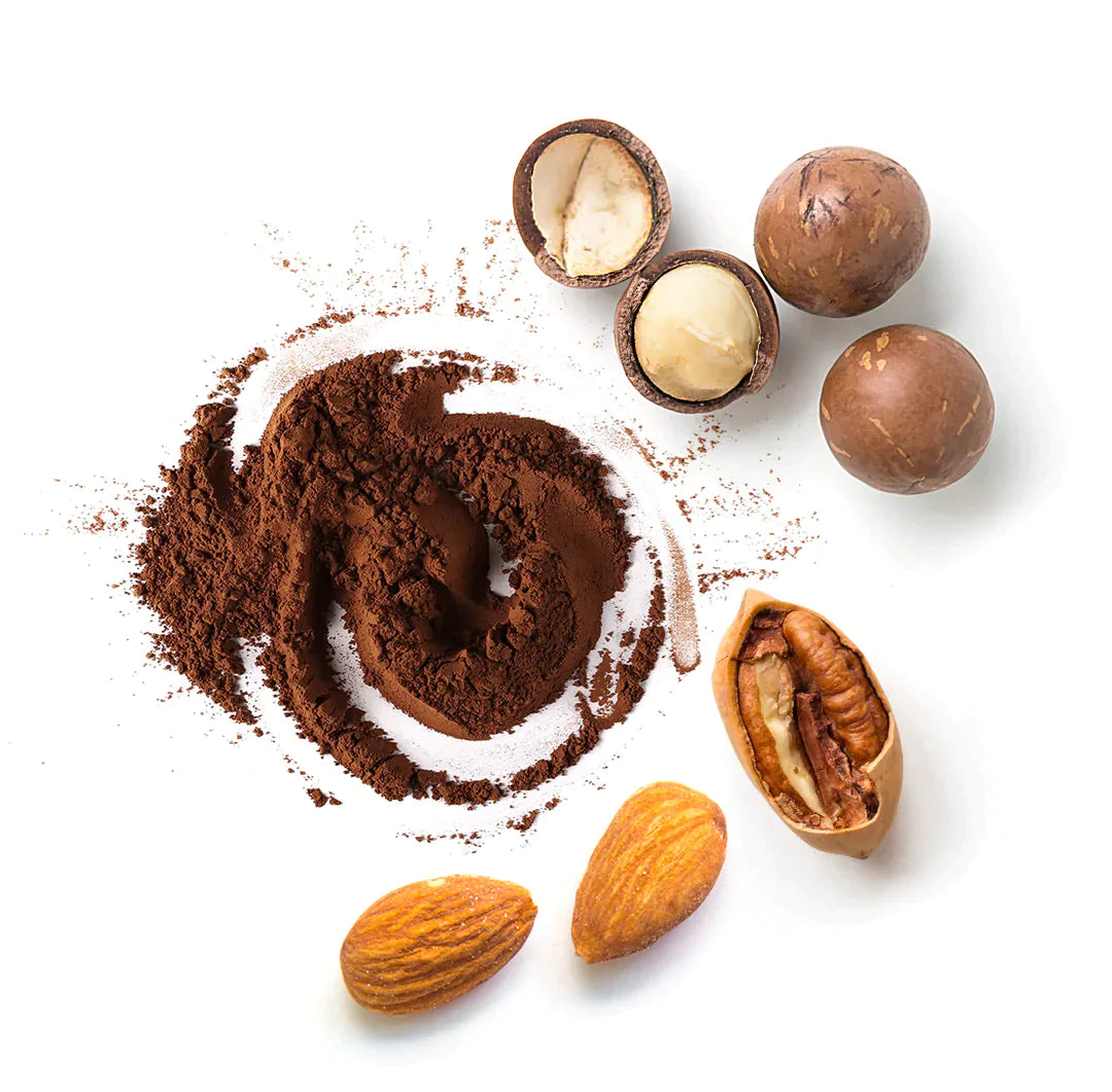 Tyčinka je vyrobena z prvotřídních ořechů, jako jsou makadamové. Ořechy obsahují řadu zdraví prospěšných živin, jako jsou antioxidanty, vitaminy, minerály, vláknina a omega-3 mastné kyseliny.