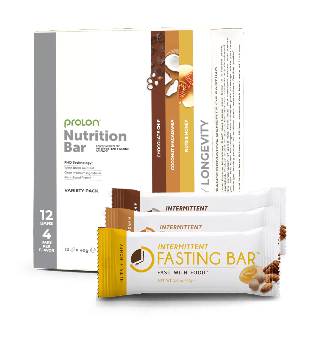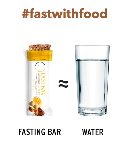 Na základě tohoto složení vytvořili tyčinku Fasting Bar, která poskytuje chutnou výživu z makadamových ořechů, pekanových ořechů, mandlí a medu a má podobný účinek na půst jako sklenice vody*.
