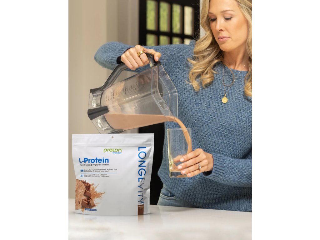 Výkonnost a zdravé stárnutí - L-Protein - Proteinový koktejl se složením na podporu dlouhověkosti. Formulován s 25 g kompletních rostlinných aminokyselin pro podporu syntézy a regenerace svalů, zároveň s udržením nízké hladiny IGF-1 – dráhy spojované se zrychleným stárnutím – pro optimální zdravé stárnutí.